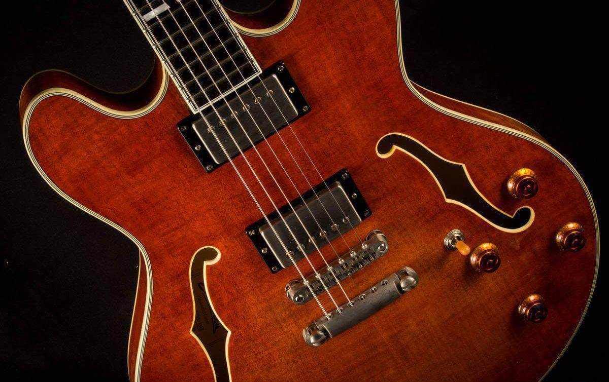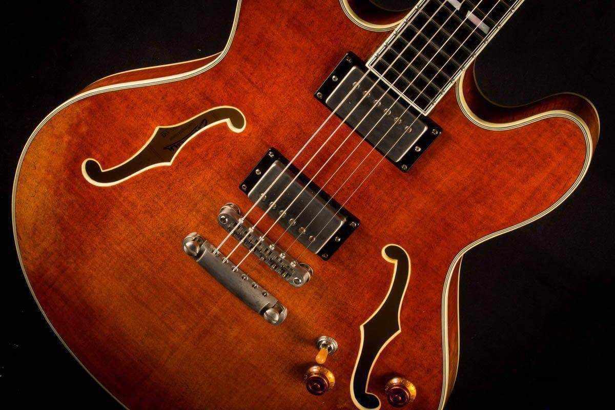 A full-size 16” thinline in our new Antique Varnish. Deluxe Laminate Top, Deluxe Laminate back and sides with plenty of tone and attitude! Dual Seymour Duncan Pickups.