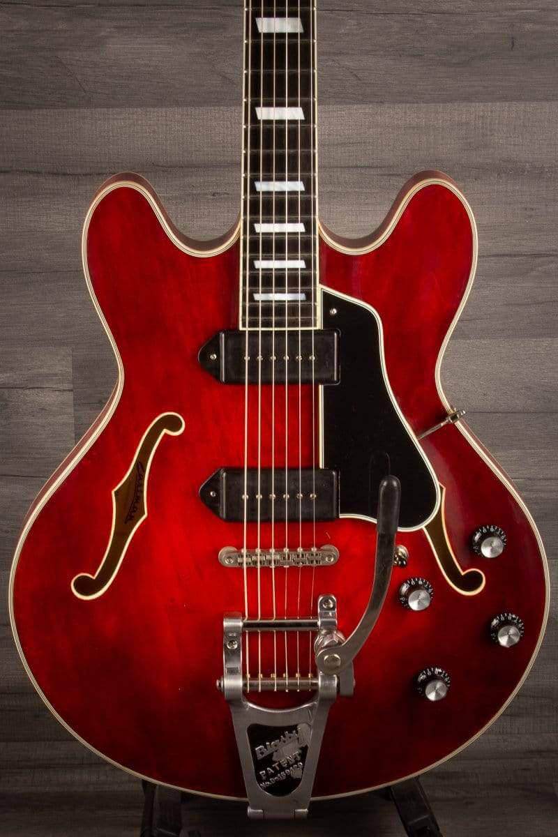 A full-size 16” thinline in our new Antique Varnish. Deluxe Laminate Top, Deluxe Laminate back and sides with plenty of tone and attitude! Dual dog eared P-90's.