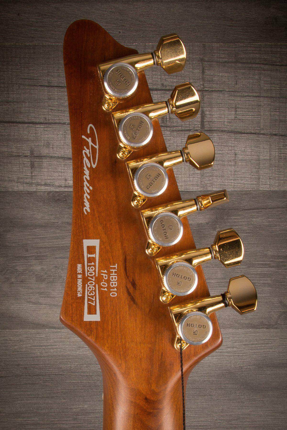 Ibanez guitars are usually sleek and edgy, but the THBB10 takes it to a new level. It's built of a sturdy basswood body with a roasted maple neck and fingerboard. These are darker in colour than your standard maple as they undergo a torrefaction process. Embedded are striking abalone inlays and 24 jumbo frets, making movement across the fingerboard effortless.