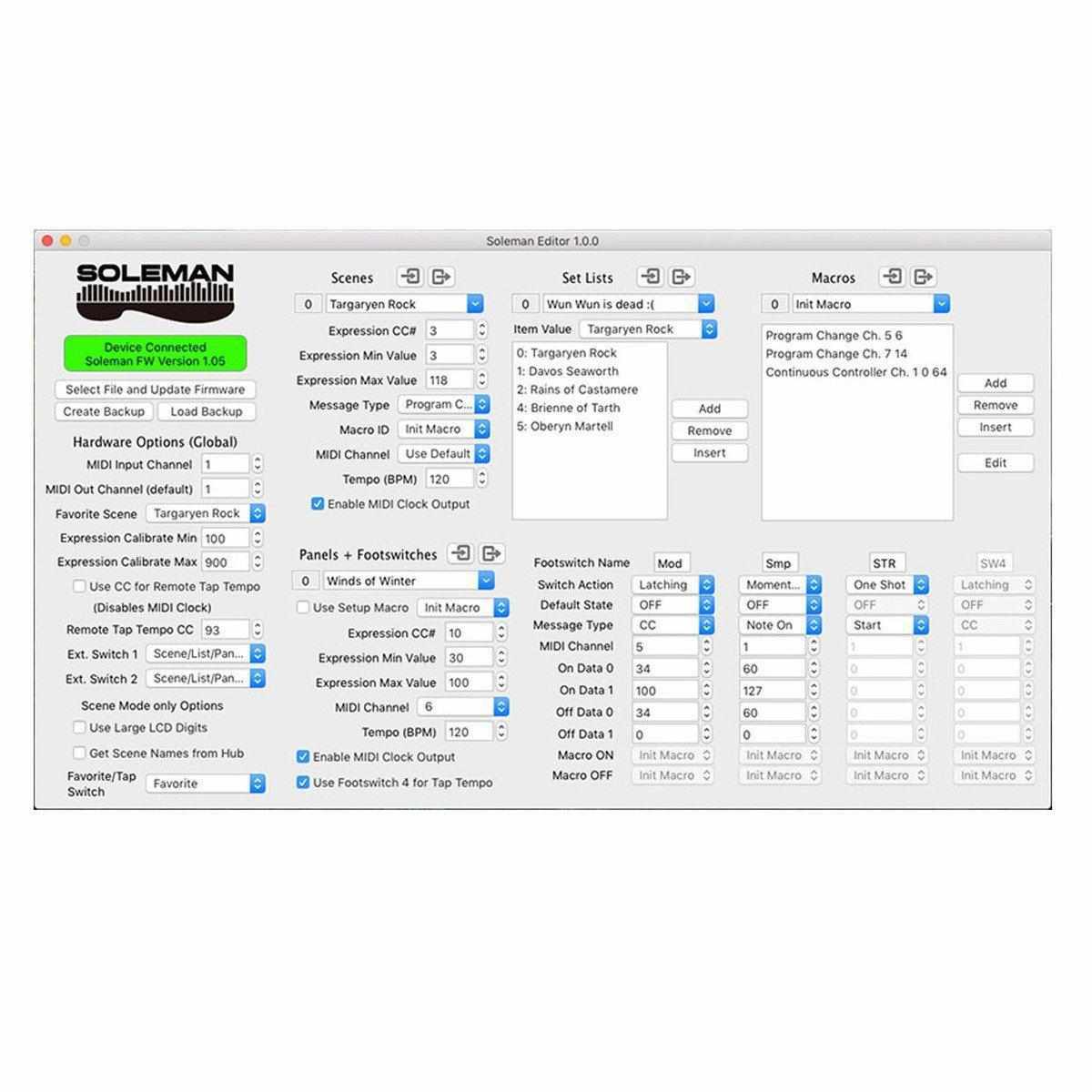 • USB Editor Software runs on Windows / Mac and connects to the Soleman via USB