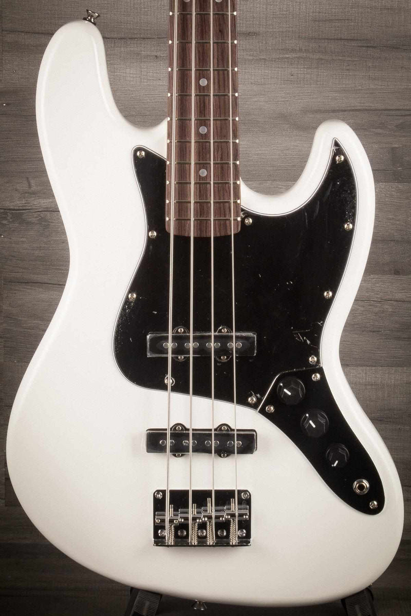 Aria STB-JB in white is a solid body electric bass with classic design and construction.