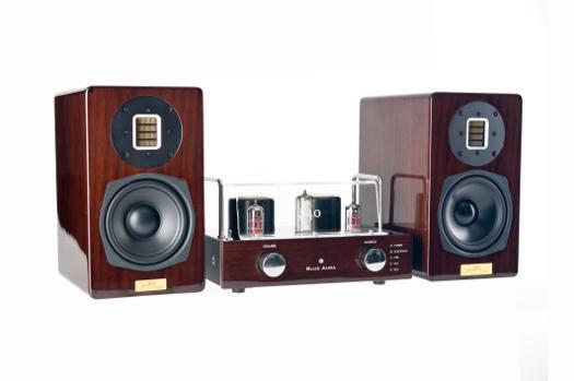 Matching high gloss walnut loudspeakers are offered as part of the system.