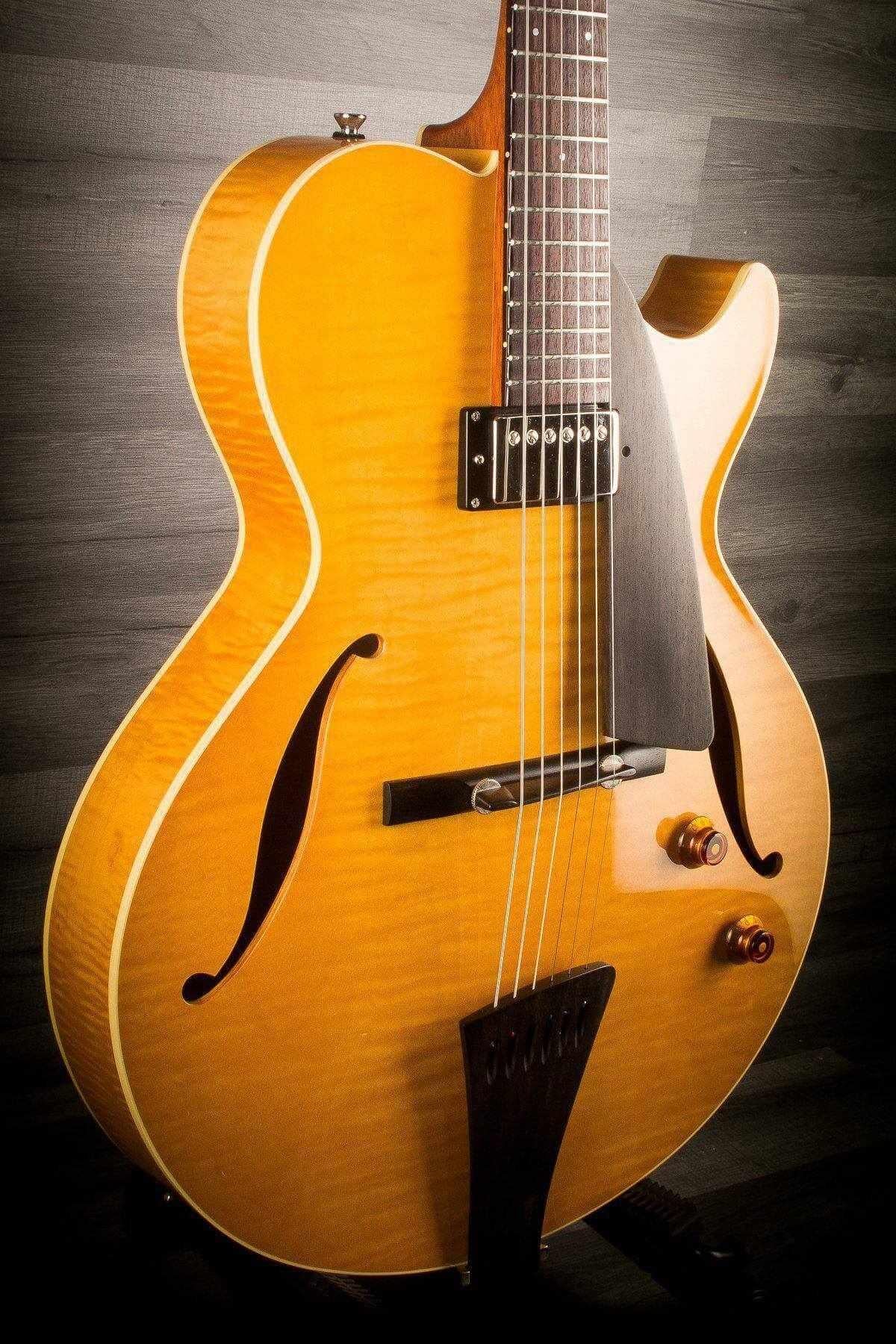 The Collings Eastside LC has been designed with vintage tone in mind for the professional jazz player. Its 16" fully-hollow body is the ideal size for most jazz players today. It's an all-laminate guitar built with various woods, grain orientations and densities to give exceptional response and tonality. The nitrocellulose lacquer finish measures between .005 and .007 thousandths in final thickness, maximising acoustical response whilst providing excellent protection.