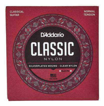 D'Addario's EJ27N Classic Nylon guitar strings are great for beginners, students and professionals alike. This normal tension set contains 3 clear nylon trebles and 3 silver-plated copper wound basses for the optimal balance of warm and projecting, long lasting tone. This normal tension set is also available for fractional 1/2 and 3/4 size classical guitars.