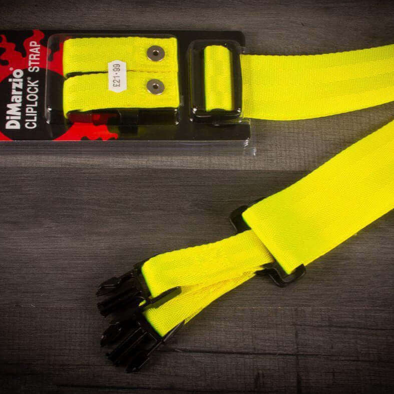 The DiMarzio ClipLock Quick Release Guitar Strap features an innovative new design which allows you to attach the end of the straps to your guitar or bass and simply connect the strap with the robust plastic buckles. Removing the need for strap locks the DiMarzio ClipLock is constructed from heavy duty nylon, withstands a weight limit of up to 68 Kg and also incorporates an adjustable length of 43.5 to 63.5 inches (110 – 161 cm). Finished in Yellow