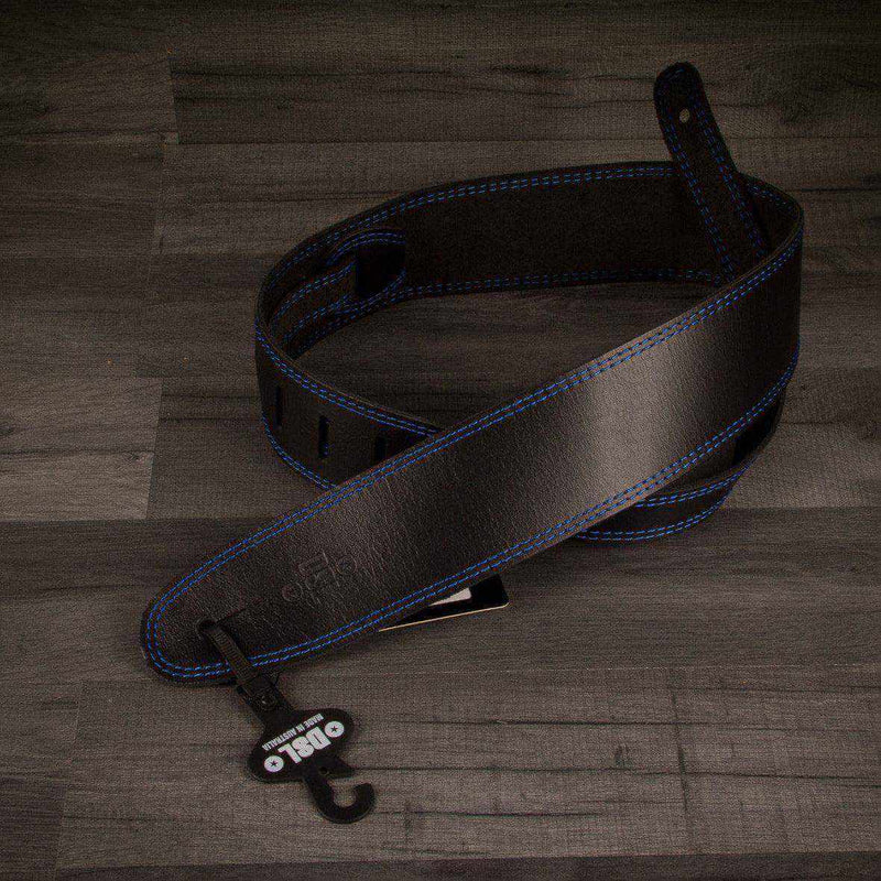 Dsl Sge Guitar Strap 2.5 Inch Wide Black Leather With Blue Stitch