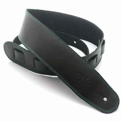 DSL SGE25-15-7 2.5″ Single Ply Guitar Strap - Saddle Black/Green Stitch