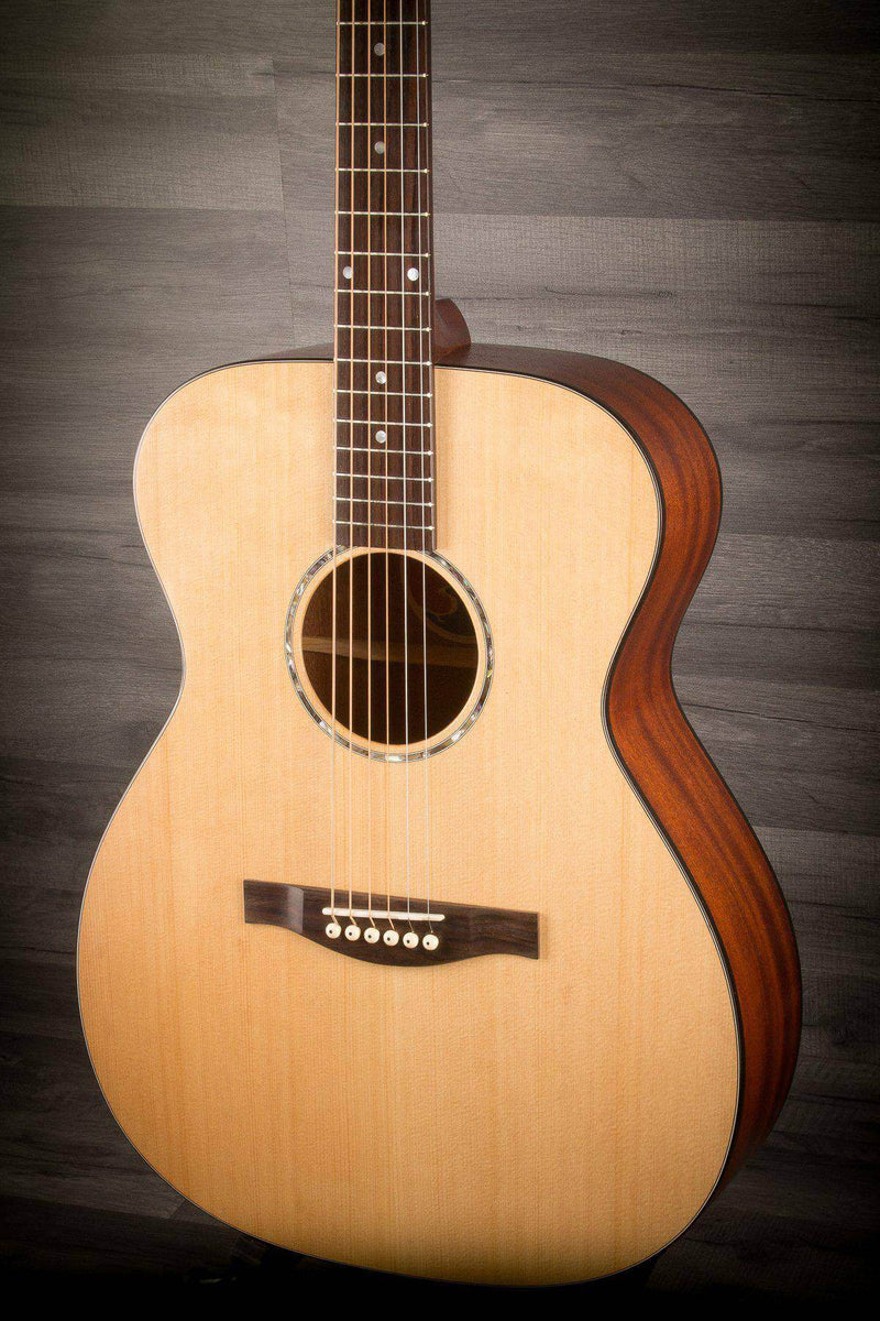 Coming in at under £300, the Eastman PCH1-OM features a Solid Sitka Spruce top and Mahogany laminate back and sides for a lightweight but sonically rich tone. With an open pore finish on the back and sides the wood is able to breathe freely, delivering a naturally resonant and organic sound.