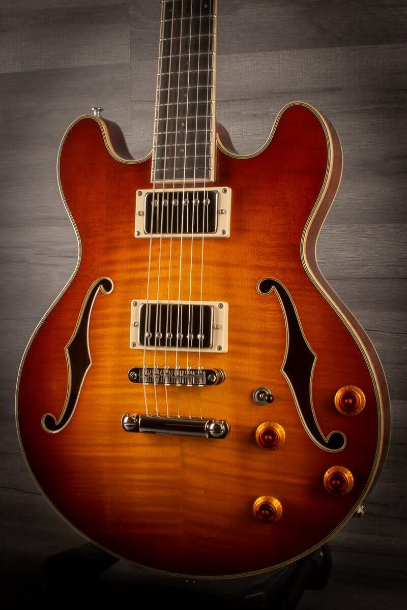 From the Eastman hand made factory comes the T184mx GB, taken inspiration from the classic, iconic smooth lines of the 339, this instrument will not disappoint in looks and more importantly its sound - great sustain and resonance acoustically, with warm rich tones thanks to the Bare Knuckle BC Old Guard Custom Humbuckers.