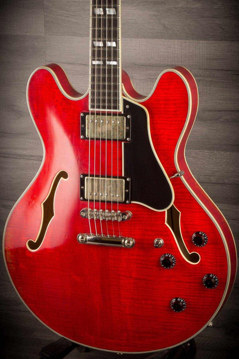 The Eastman T59/v Antique Red has a Laminated Maple Body, Maple Neck, Ebony Fretboard, Split Parallelogram Inlays, Gotoh Relic Tuners, Seymour Duncan Antiquity Humbuckers, Incl. Case
