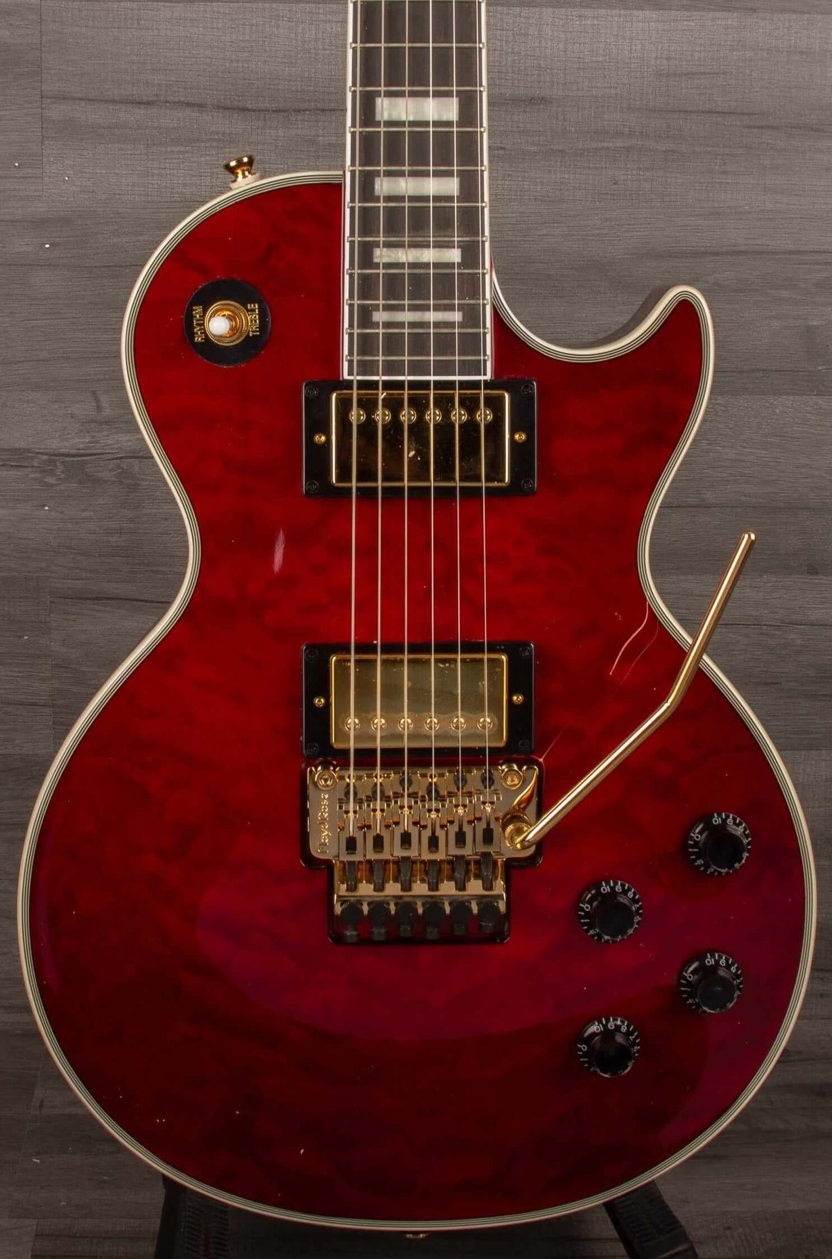 - AAAA Quilted Maple Veneer Top — Gives the instrument a stunning, premium aesthetic. Complete with a glorious Ruby finish.