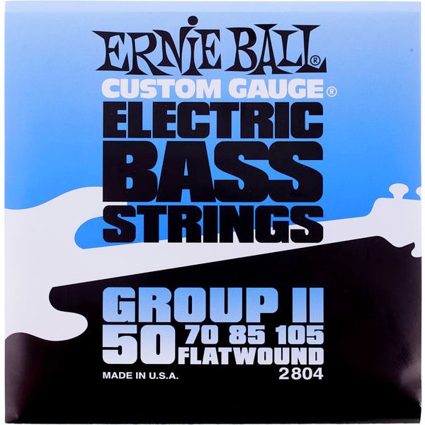 Ernie Ball Flatwound 50-105 Bass Strings 2804 Group II Ernie Ball offers the Flatwound series of bass guitar strings so that you can make any bass sound as clear and sharp as the day you brought it home. Flat chrome plated steel wire is wrapped around a hex shaped tin plated steel wire providing a smoother feel and mellow sound.