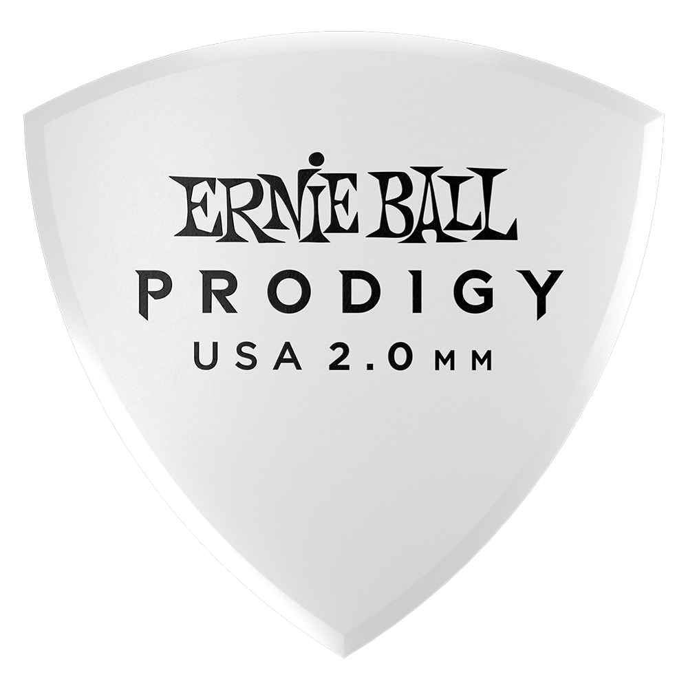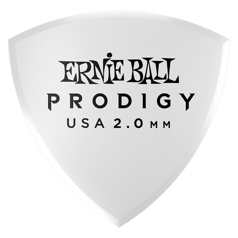 Ernie Ball Prodigy picks feature highly durable delrin material for a more secure non-slip surface. The machined beveled edge and sharp point allow for less drag, added articulation, and precise control while playing. Prodigy large shield shape in 2mm.