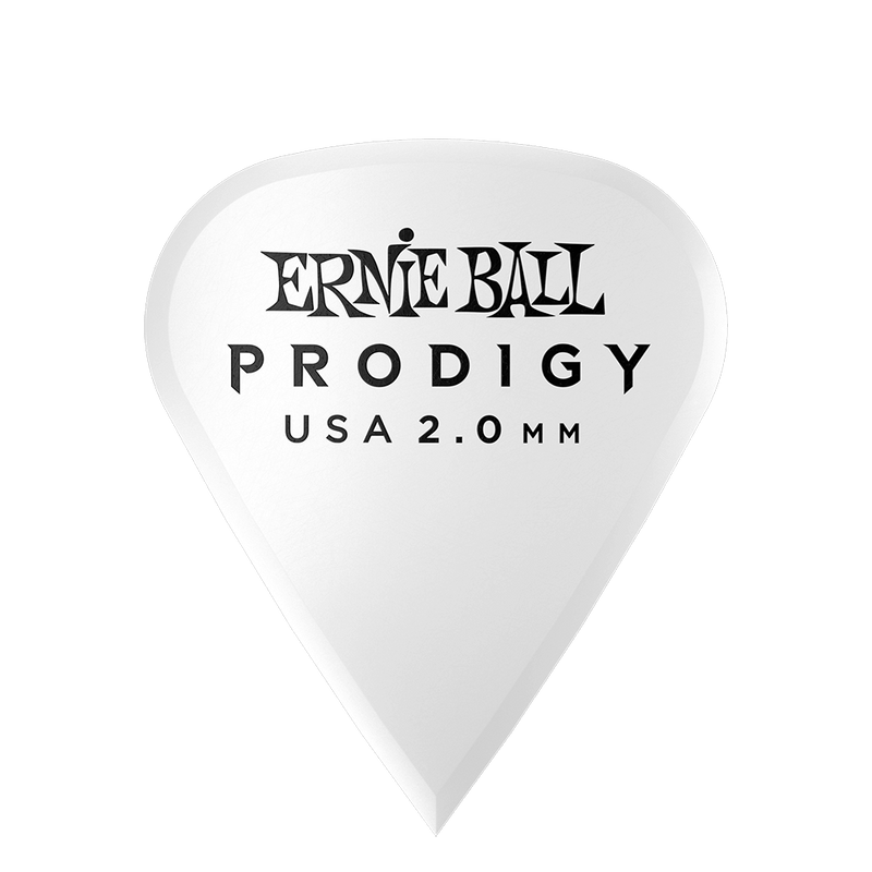 Ernie Ball Prodigy picks feature highly durable delrin material for a more secure non-slip surface. The machined beveled edge and sharp point allow for less drag, added articulation, and precise control while playing. Prodigy sharp shape in 2mm.