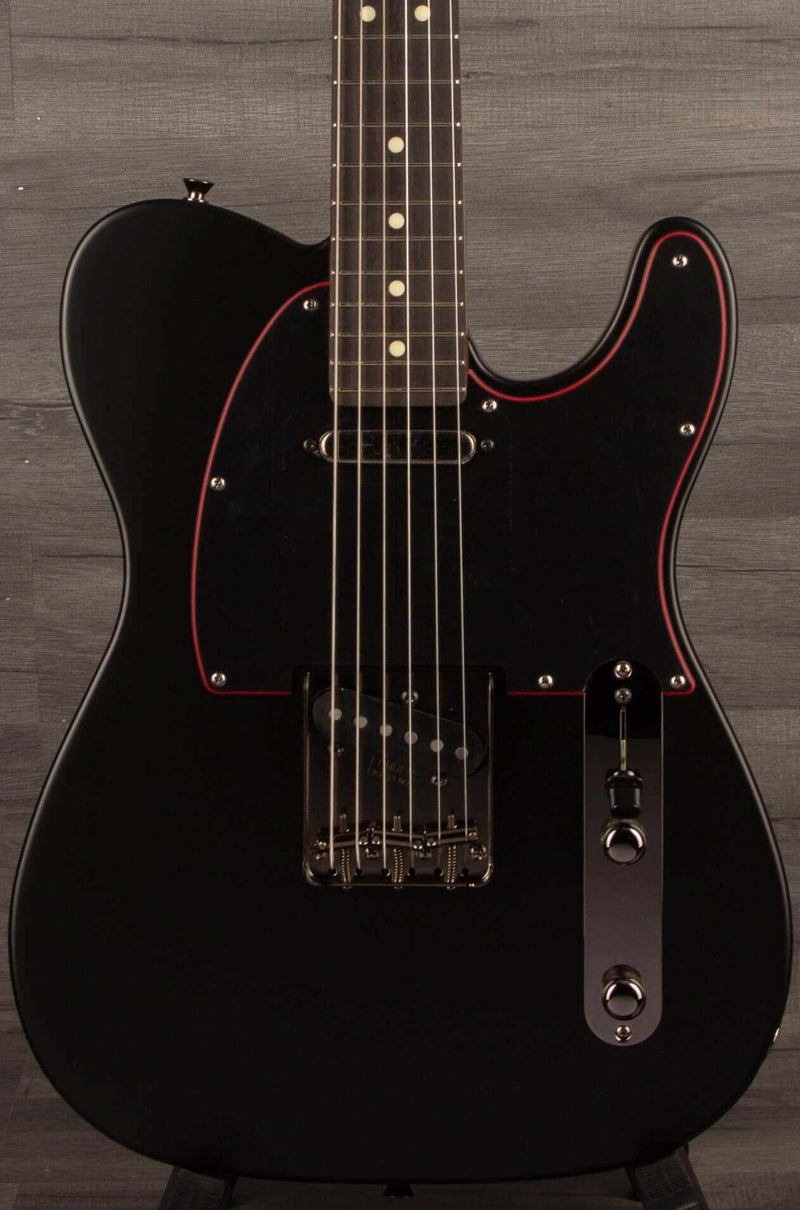 Made in Japan Limited Hybrid II Telecaster®, Noir is based on the Hybrid II, with a satin black finish matching headstock for a strong look and a 3-Ply black pickguard with an eye-catching red center layer. It is equipped with a special atmosphere combined with the red metal logo on the head. All metal parts and plastic parts are unified in black, and also equipped with a Synthetic Bone Nut, 9.5-inch-radius fingerboard, Narrow-tall frets providing a modern feel and comfortable playability.