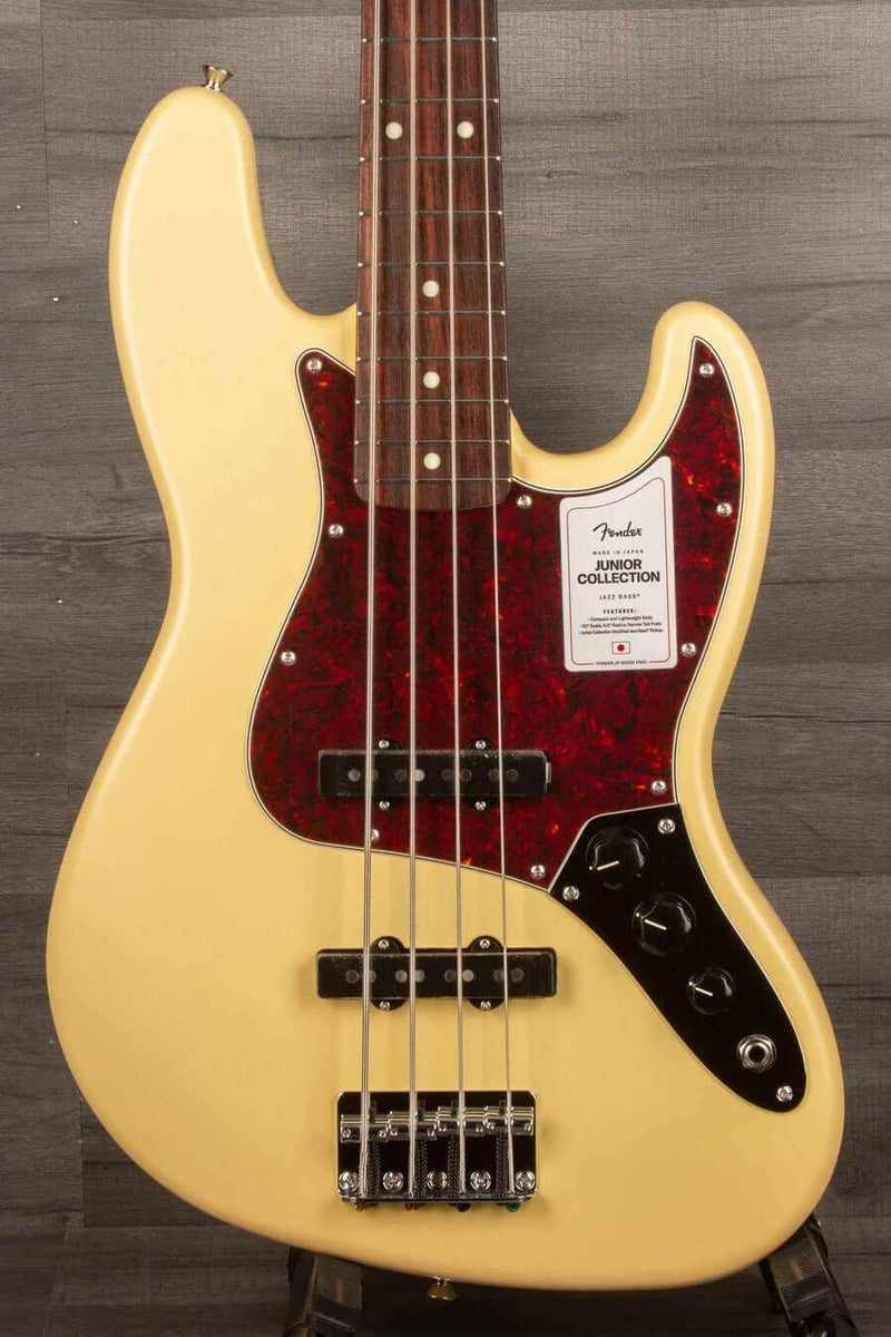 Fender Made in Japan Junior Collection Jazz Bass Guitar, Satin Vintage White - Rosewood Fingerboard