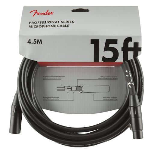 Fender Pro Series Microphone Cable 4.5m Road-reliable and flexible, Fender Professional Series microphone cables boast a thick gauge with high-quality components that transparently retain your tone without getting in the way. Sporting quiet and resilient spiral shielding, these cables are engineered to avoid twisting, kinking and any "physical memory." On stage or in the studio, plug in and play with creative confidence and peace of mind.
