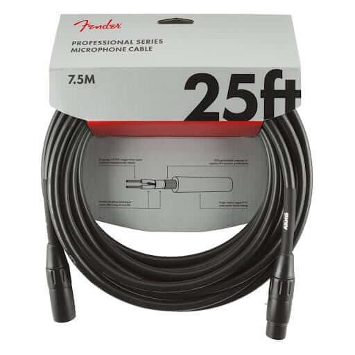 Fender Pro Series Microphone Cable 7.5m Road-reliable and flexible, Fender Professional Series microphone cables boast a thick gauge with high-quality components that transparently retain your tone without getting in the way. Sporting quiet and resilient spiral shielding, these cables are engineered to avoid twisting, kinking and any "physical memory." On stage or in the studio, plug in and play with creative confidence and peace of mind.