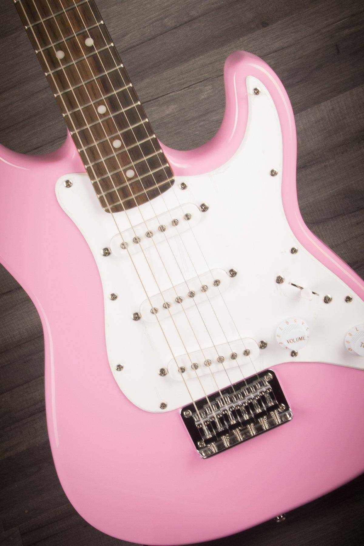 The Mini is the 3/4-size version (22.75" scale length) of the Bullet® and makes an ideal travel guitar for players of all ages and a great first guitar for young beginners. Featuring three single-coil pickups and five-way switching. Also available in Pink and Red.