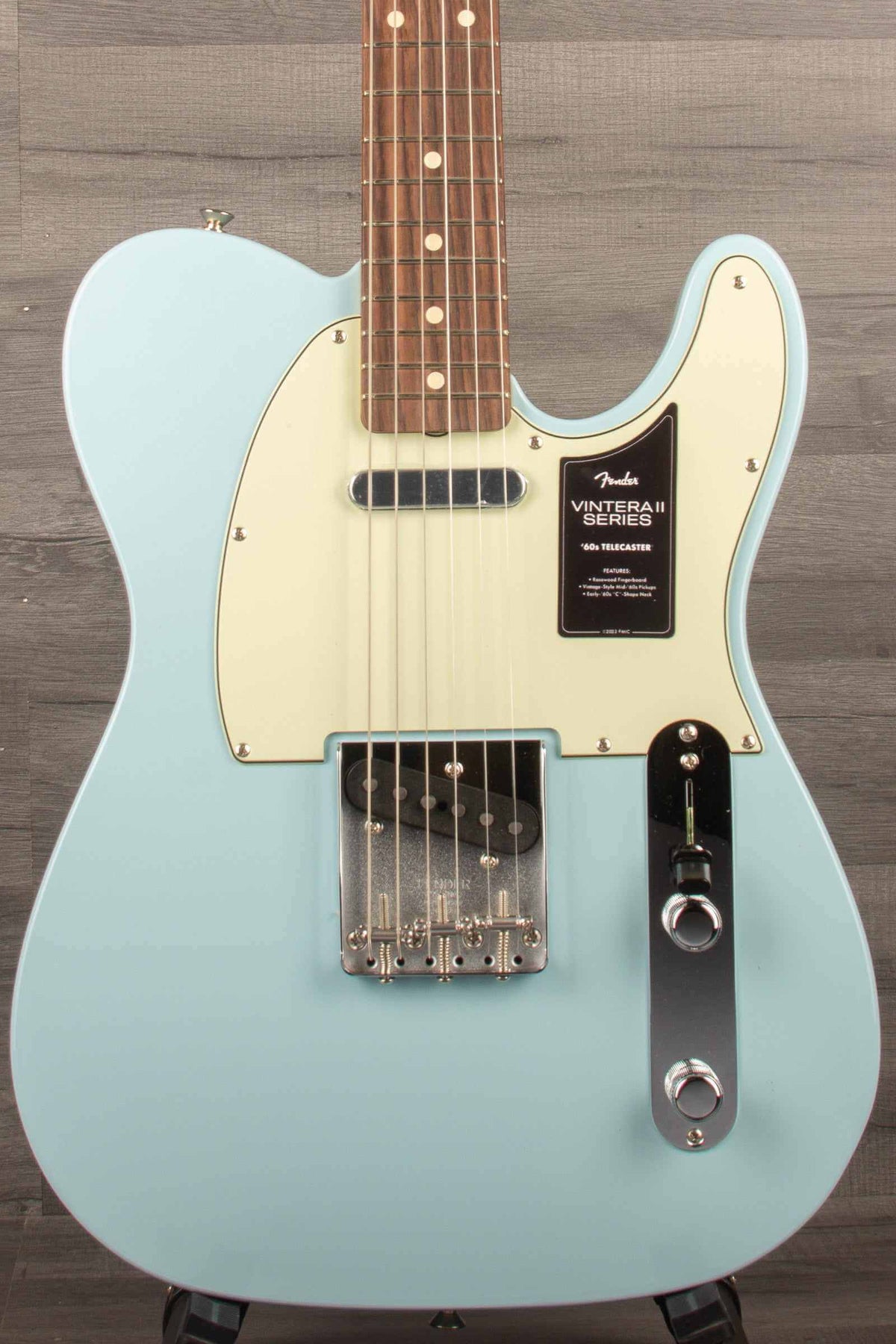 The Vintera® II '60s Telecaster® features an alder body and a maple neck with rosewood fingerboard for classic Fender tone that's full of punch and clarity. The early-'60s "C" shape neck is based on a classic '60s profile for an intuitive and inviting feel, while the 7.25" radius fingerboard with vintage-tall frets provides vintage comfort with ample room for big bends and expressive vibrato. Under the hood, you'll find a pair of vintage-style '60s pickups that deliver all the crystal-clear chime and raw, steely twang that made Fender famous. The vintage-style 3-saddle bridge with slotted steel saddles offers authentic '60s twang, while vintage-style tuning machines provide classic looks with a finer gear ratio and enhanced tuning stability to complete the package.