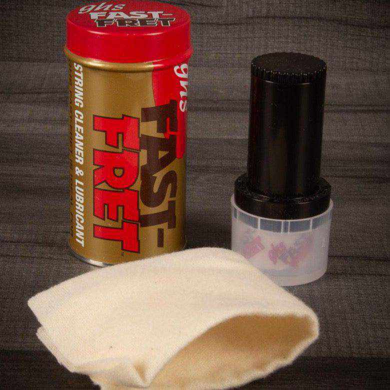String and neck lubricant, not a spray. Lets fingers slide freely, keeps strings clean and is good for wood. Glides on wipes off, specially formulated for stringed instruments. GHS Fast fret cleans strings, lets you play faster, brightens sound, prolongs fingerboard life, long lasting, won't damage your frets.