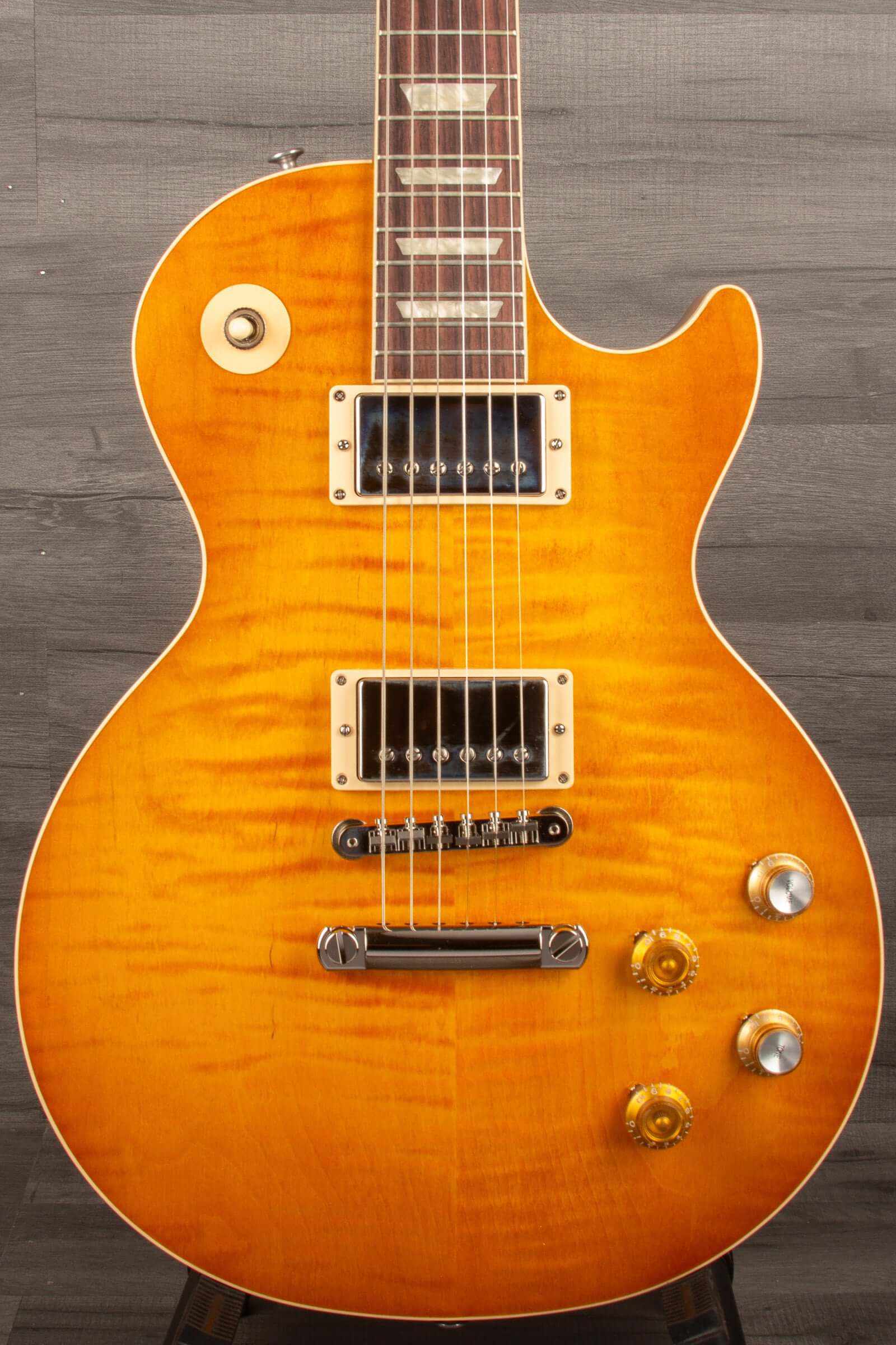 The story of “Greeny” is shrouded in mystery, but few guitars are as illustrious. Greeny is one of the most iconic original Les Paul Standards ever made, with a unique sound as recognizable as the guitar itself. Previously owned by Peter Green, it was used throughout his time with Fleetwood Mac and later sold to Gary Moore, who used it for three decades with Thin Lizzy and as a solo artist. Now owned by Kirk Hammett, Greeny has passed through the hands of three legendary guitarists. Its distinctive sound is partly from the out-of-phase middle switch position due to the neck pickup’s reversed magnetic polarity. The Kirk Hammett "Greeny” Les Paul Standard was inspired by this legendary guitar and gives players around the world the opportunity to experience some of the magic of "Greeny" for themselves. An Original Series hardshell case is included.