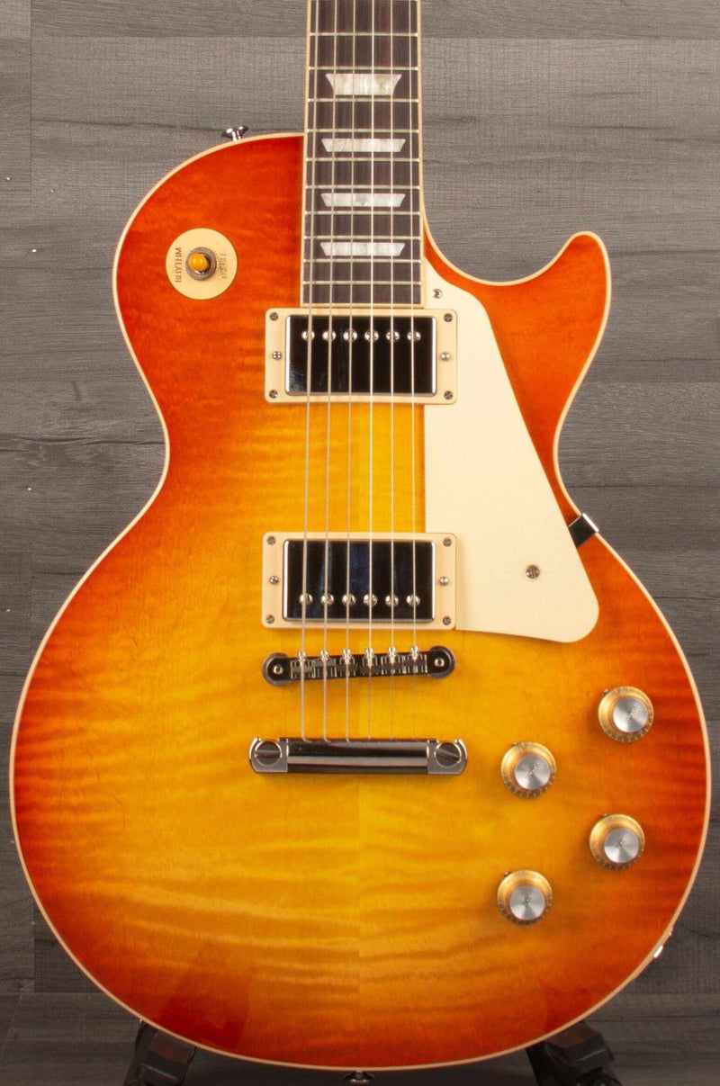 The Gibson Les Paul Standard 60's Figured Top Unburst features classic Les Paul tonewoods and a slim asymmetrical neck for maximum comfort. It is fitted with ABR-1 bridge and Grover button machineheads, as well as '60s Burstbucker Alnico V humbuckers that provide a slightly hotter output. Perfect for warm, rich tone with no weight relief.