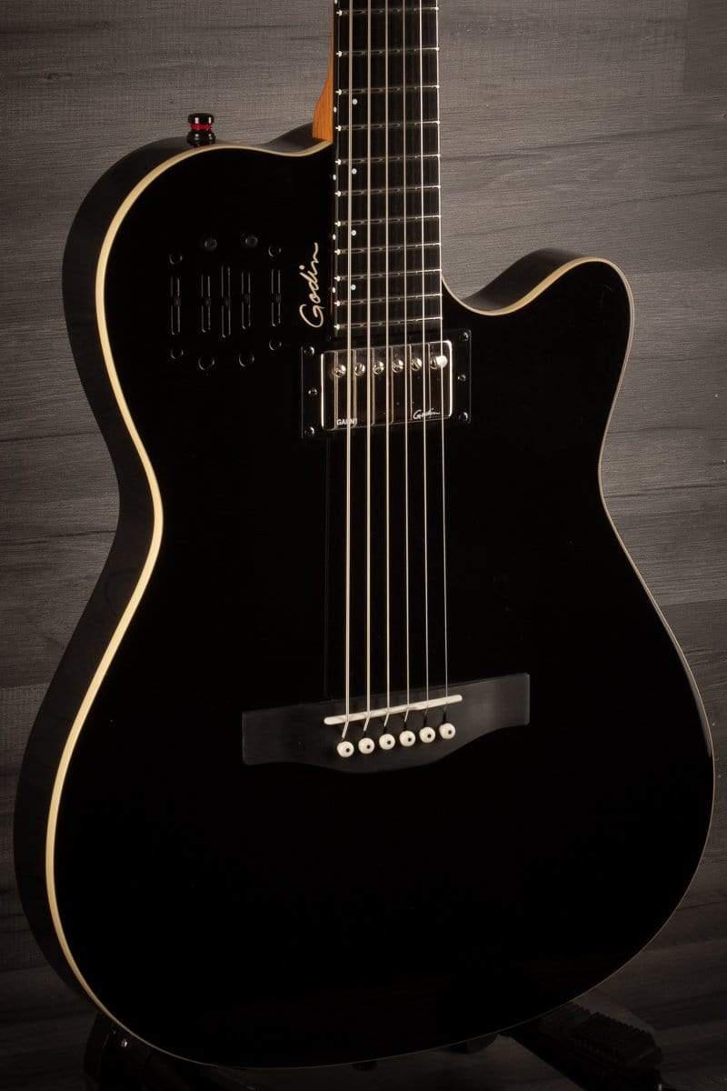 - Pickup/Preamp: Custom Godin Under Saddle Transducer, Custom Humbucker & Custom Preamp