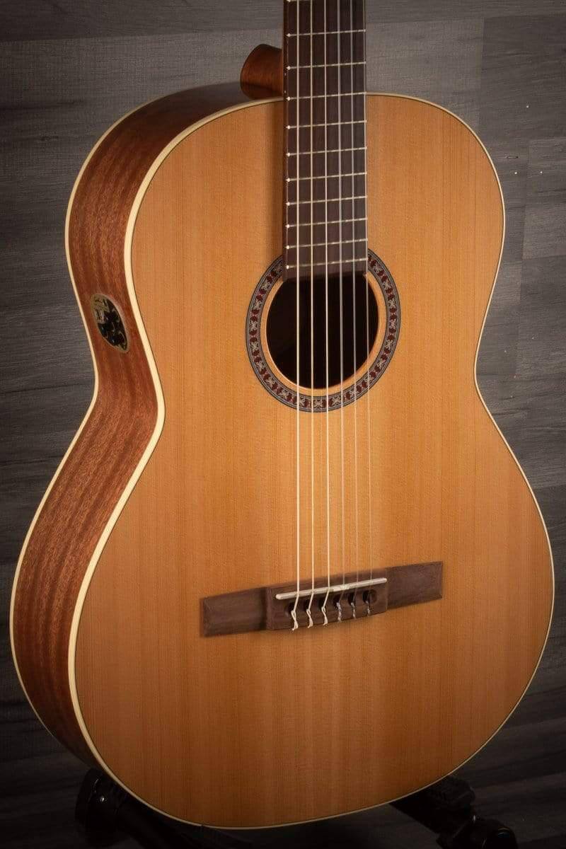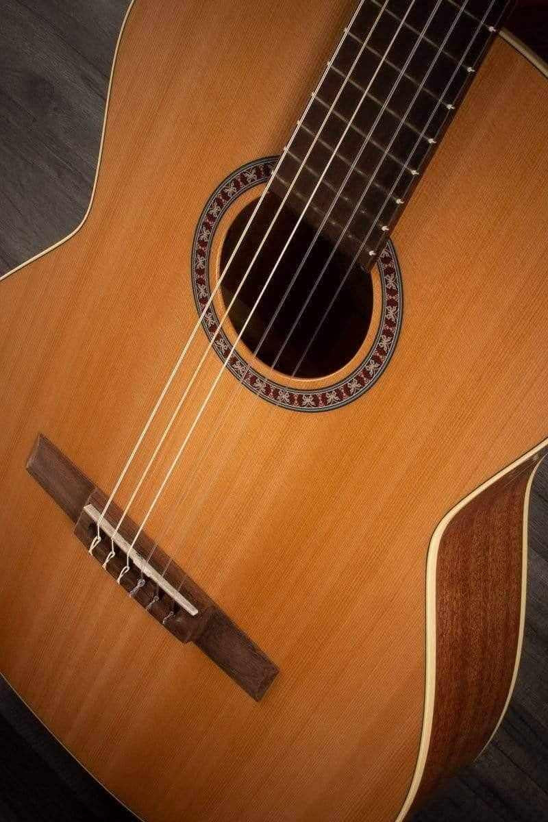 The Godin Concert QIT features a stunning select pressure tested solid cedar top. The manufacturing process of pressure testing each solid top ensures they have the highest levels of stiffness and rigidity, along with maximum harmonic vibration. This process is becoming more and more popular with guitar manufacturing as it benefits the overall tone, projection, and resonance of a guitar. It is this combination of quality, rigidity, and flexibility that gives the top its incredible resonance and stunning appearance.