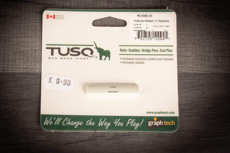 Guitar makers and players agree...acoustic guitars come alive with TUSQ man-made ivory. TUSQ is simply more efficient at transferring vibrations to your guitar top, resulting in big open lows and clear bell like highs.