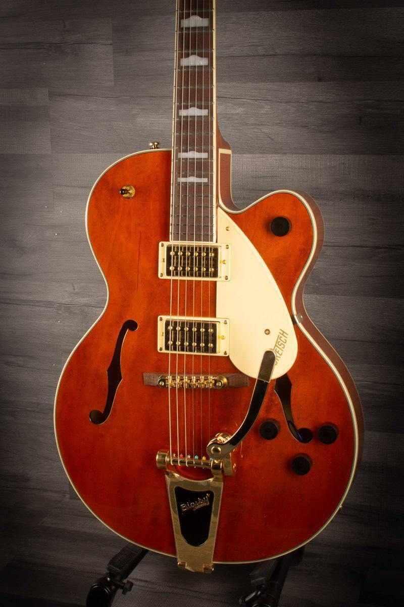 Big, bold and righteous, the G2410TG Streamliner™ Hollow Body Single-Cut with Bigsby® and Gold Hardware is designed for the modern guitarist who yearns for something beyond the norm. A commanding guitar for powerful players, the G2410TG’s modern sonics, thinner maple body, updated electronics and authentically elegant style create the latest iteration of That Great Gretsch® Sound!™
