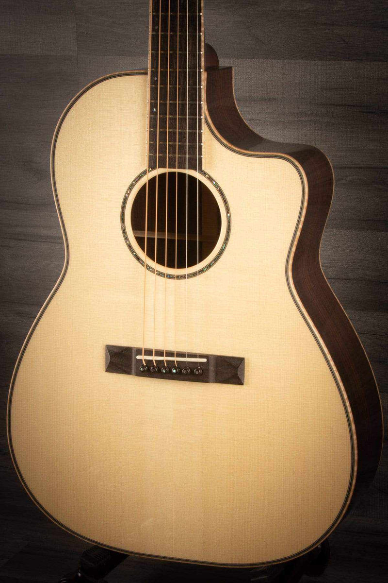 The Model FS is aimed directly at the modern finger-style player. While utilizing the body shape of the CM, it adds shallower body depth for a more immediate response along with lighter top bracing for greater sustain. Its wider tapered fretboard, combined with a flatter, low-profile neck shape, ultimately creates the perfect finger-style guitar.
