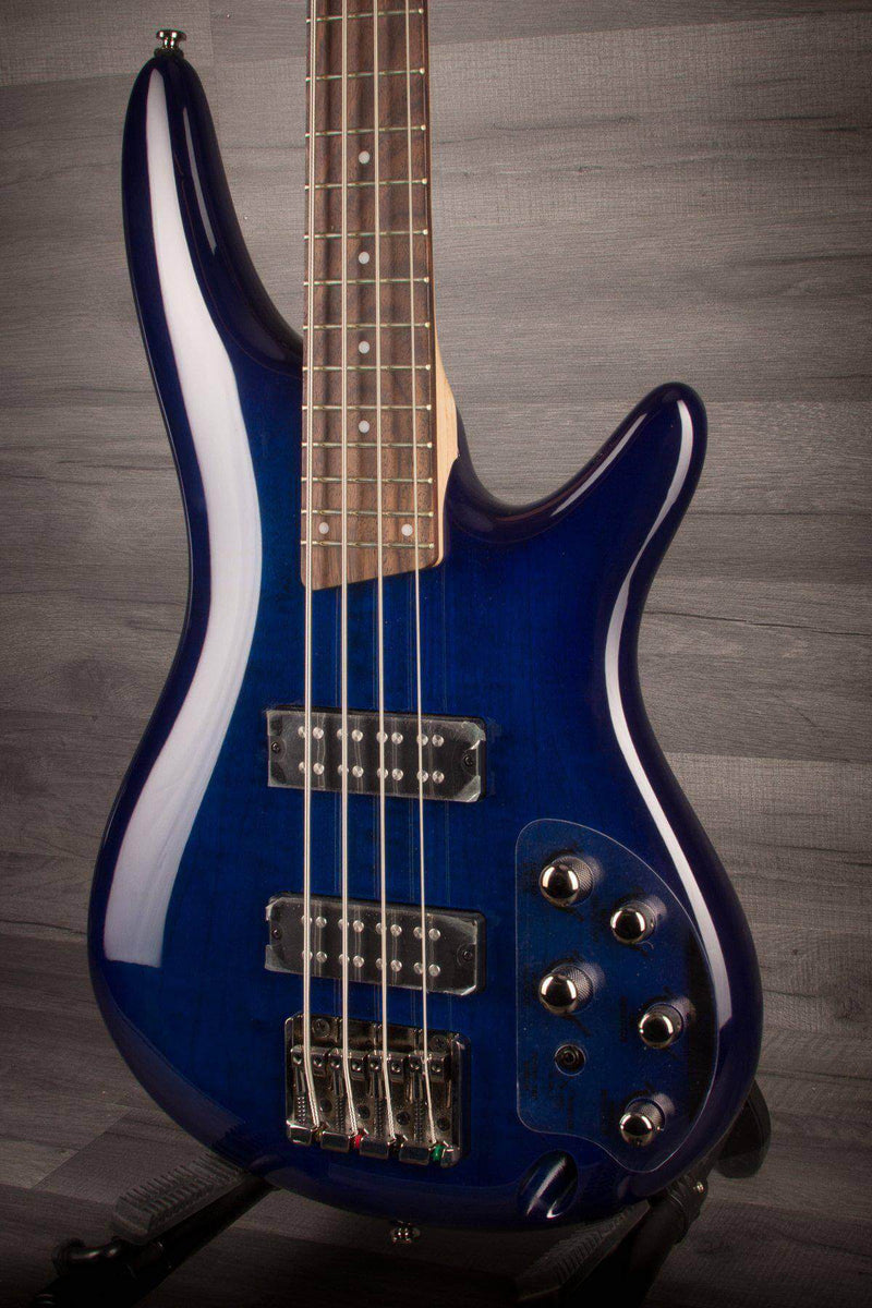 The Ibanez SR370E Sapphire Blue bass guitar is part of the modern range of Soundgear bass guitars from Ibanez. Due to its sleek body and comfortable, slim neck the Soundgear basses have been favourites among new bassists and advanced bassists alike for nearly three decades.