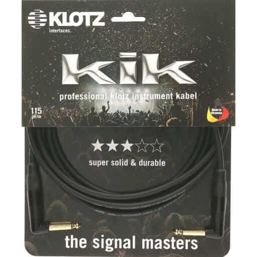 Entering a new age. Klotz has updated their KIK Instrument Cable to present the KIK Pro Instrument Cable. Easy and simple to use, this cable is perfect for any ambitious entry-level musician. But it's not to be underestimated. Despite its simplicity, it delivers a premium sound quality so you can your audience can enjoy your music. Its 24-carat gold-plated contacts ensure superb signal fidelity for a crisp, clear sound that can be enjoyed by all. Coupled with its precise workmanship and exceptional strain relief, these cables ensure complete stability and breakproof durability. You will be using them for years to come. Not to mention the ergonomic lines of the die-cast housing which feature groove and recessed grips for easy handling and efficient use. You can't go wrong with Klotz's KIK Pro Instrument Cable.