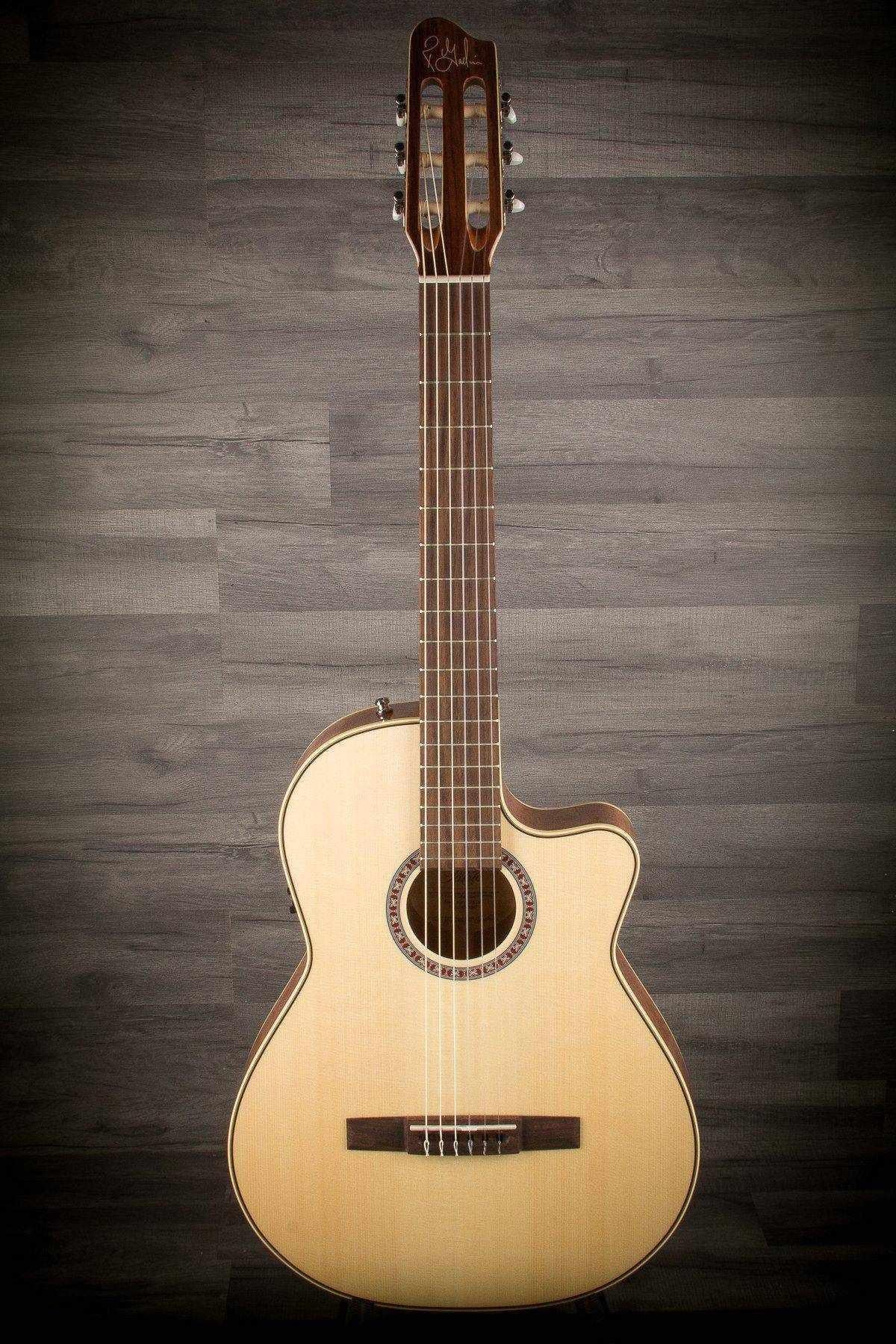 The La Patrie Arena Classical Guitar features a stunning pressure tested spruce top, delivering beautifully warm tones with enhanced characteristics. The manufacturing process of pressure testing each solid top ensures they have the highest levels of stiffness and rigidity, along with maximum harmonic vibration. This process is becoming more and more popular with guitar manufacturing as it benefits the overall tone, projection, and resonance of a guitar. It is this combination of quality, rigidity, and flexibility that gives the top its incredible resonance and stunning appearance.