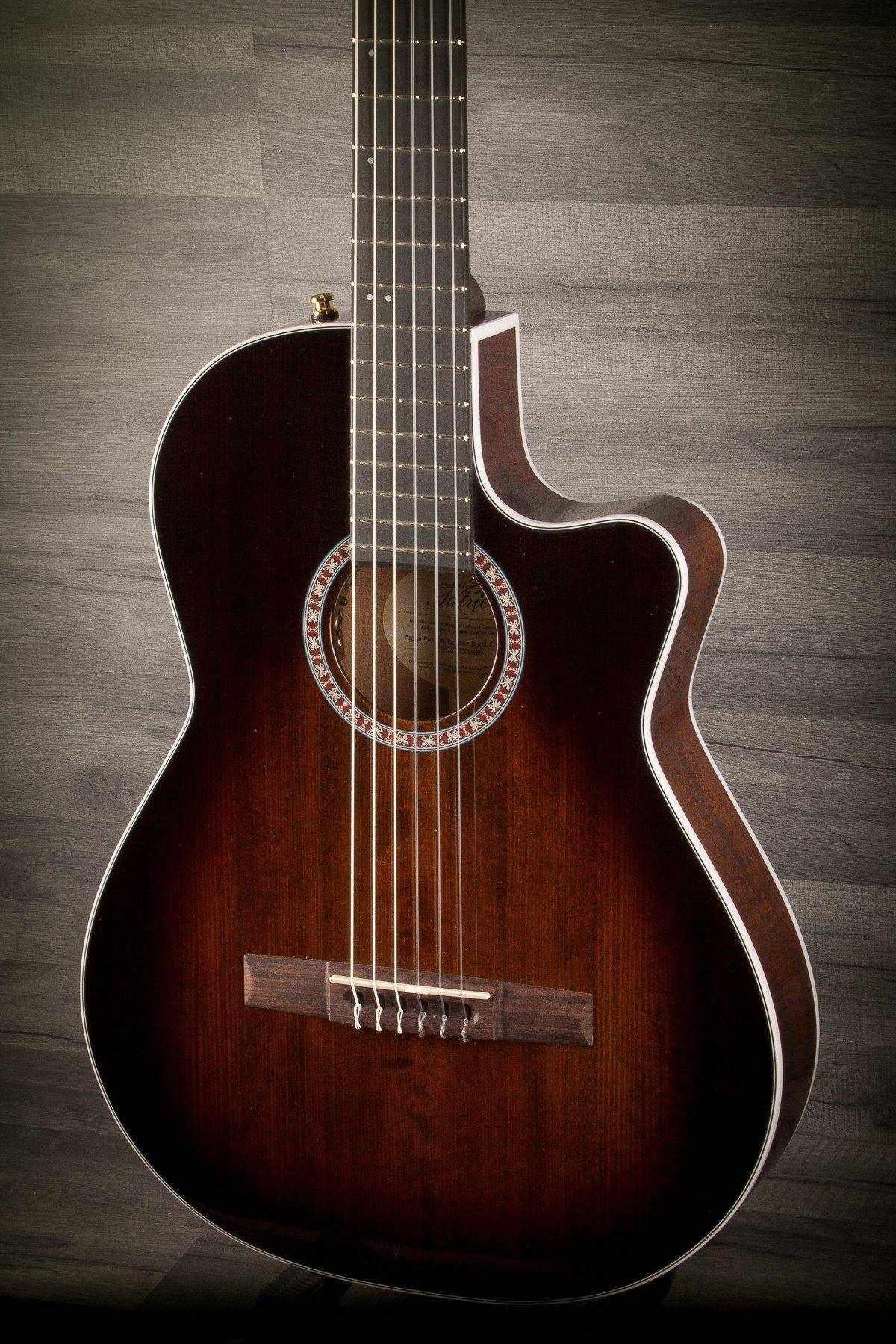 The four models in the series are offered in a choice of three tonewoods: Mahogany, Wild Cherry, or Flame Maple and all benefit from select pressure tested Spruce tops. Offered with B-Band Crescent II electronics, this thinline acoustic/electric nylon is a performer’s dream - at home, on stage, or in the studio.