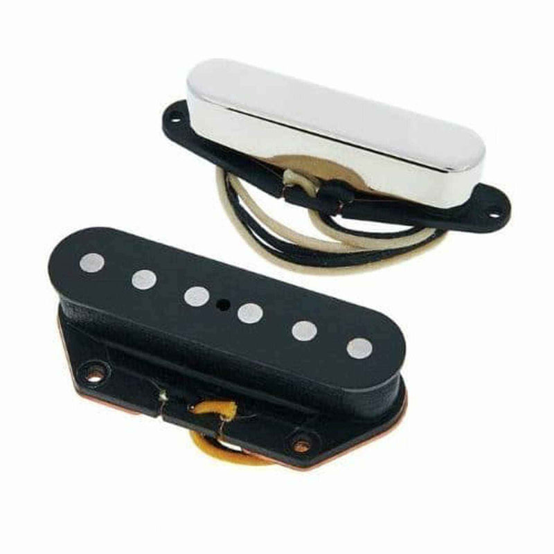 Wound to 1952 Telecaster pickup specs, this model gives you a clear and bright Tele tone with a distinct round bottom end when played with a soft attack. It produces a full, fat rock tone when used with an AC 30 or Fender tweed amp, and the definition holds together nicely with heavier amp distortion. Features a flat-pole design with Alnico 2 magnets, wax potted coils, and vintage style cloth covered lead wire. DC: Bridge 6.7K