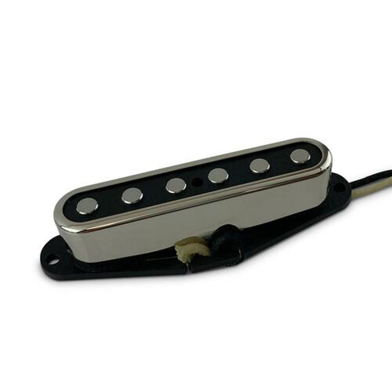 Sometimes, even the most die-hard Tele fan wants to channel their inner Jimi. And we're here to help. Since the metal cover on a Telecaster neck pickup adds grittiness to the sound, we specially designed a custom nickel pickup cover for our Royal T to emulate the Stratocaster neck tone. We also use a special selection of magnet type and length, a unique wind, and 42-gauge heavy build coil wire typically used on Strat pickups. The result is a deeper, clearer, and punchier Strat-colored sound that combines the best of Blonde and Blackface tones. Try mixing with our Vintage T Series bridge pickup for spectacular results. Made with Alnico 5 magnets and vintage style cloth covered lead wire.