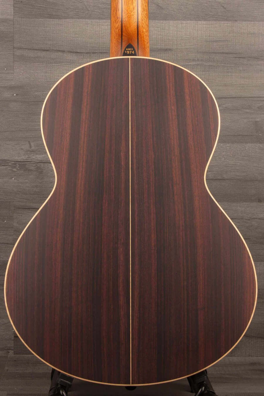 Created in celebration of Lowden’s 50th Anniversary, the WL-35 is a rare and beautifully handcrafted acoustic guitar that showcases East indian rosewood, Visually striking and tonally rich, this wood ages from a natural rose hue into a deep, luxurious purple. Selected personally by George Lowden from a singular back set during a supplier visit, this piece stands as a tribute to nature’s rarity and luthier artistry.