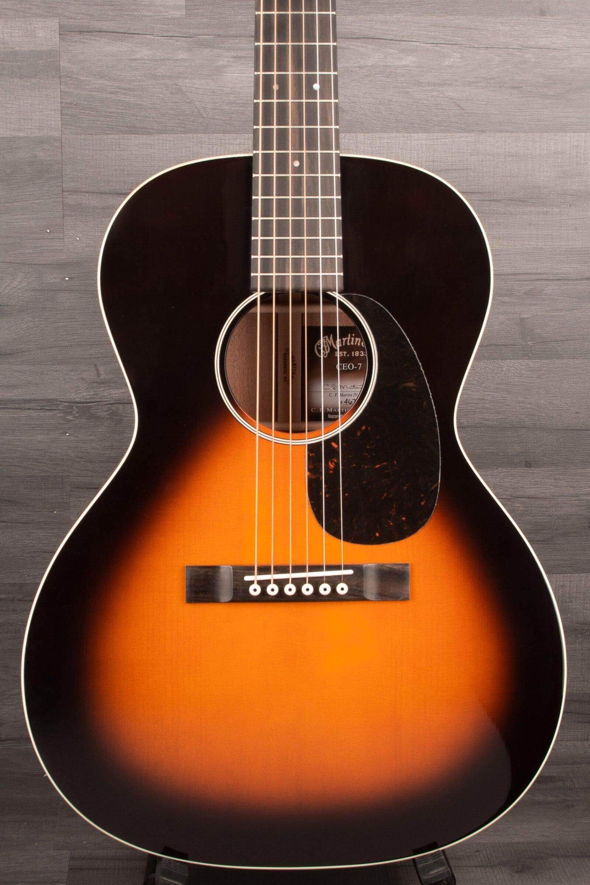 Reminiscent of models from the “Golden Era”, the CEO-7 features a sunburst finish, golden age tuners and authentic headplate lettering. This new 14-fret short scale 00 “sloped shoulder” model features a solid Adirondack spruce top with solid mahogany back and sides for complex tonality.