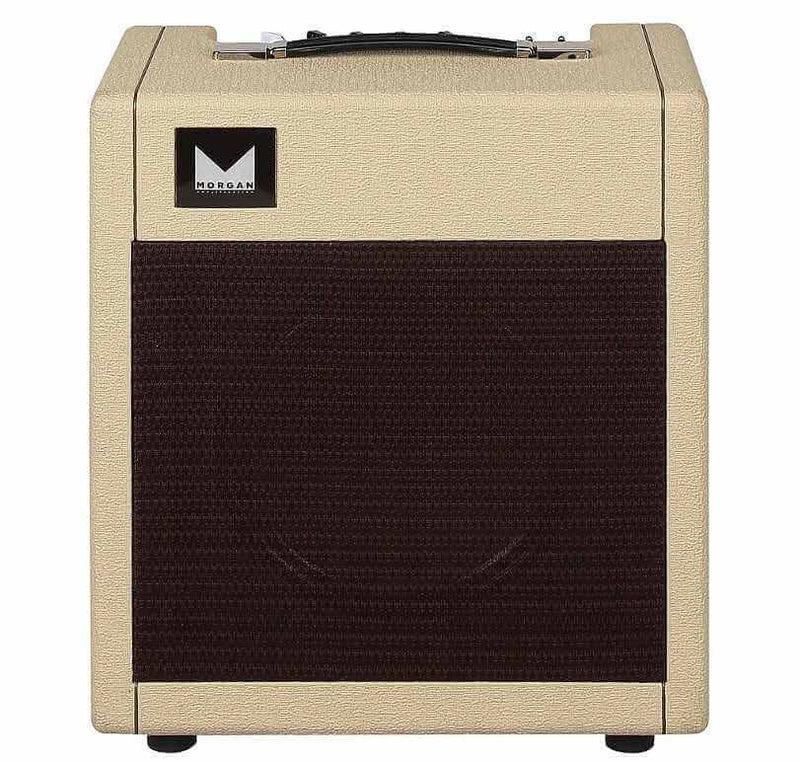 The PR12 Gives classic black face tone with improved low end by giving the power supply of the amp more juice. The reverb has also been modified to add a Dwell control. The Dwell control allows you to control the amount of decay in your reverb. This allows you to have a very high reverb mix without washing out your guitar tone. The bass and treble controls interact with each other to give you a wide range of tones. The cabinet is a specially designed fix baffle cab. The fixed baffle design allows the entire cab to resonate with the speaker giving it a much larger sound for such a small box. As with all Morgan Amps the PR12 LOVES pedals and works well with any pedalboard.