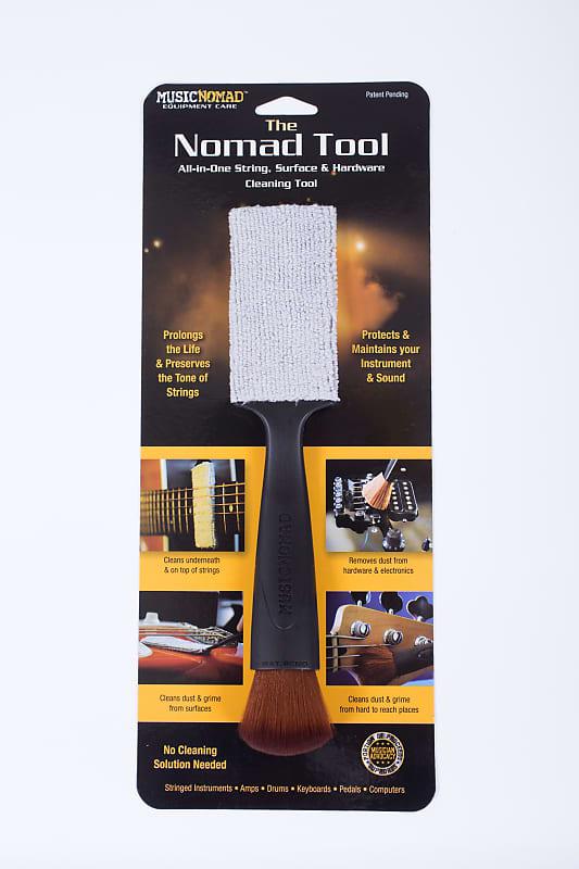 The premium quality washable microfiber pad cleans on top AND underneath guitar strings in seconds. The 100% lint free microfiber pad protects frets and fretboard from getting damaged while at the same time cleaning them. Also, the microfiber pad quickly cleans dust, grime and fingerprints on the instrument’s body and hard to reach areas. Turn it around to use the super soft, natural brush fibers as a cleaner for dust buildup and care on the body, bridge, pickups, saddles, tuners, headstock and more. Cleaning off dust & grime is a must do before you apply any polish to avoid scratching the finish. The All in 1 Nomad Tool can be used on all electric and acoustic stringed instruments, drums, mixers, computers, pedals and more.