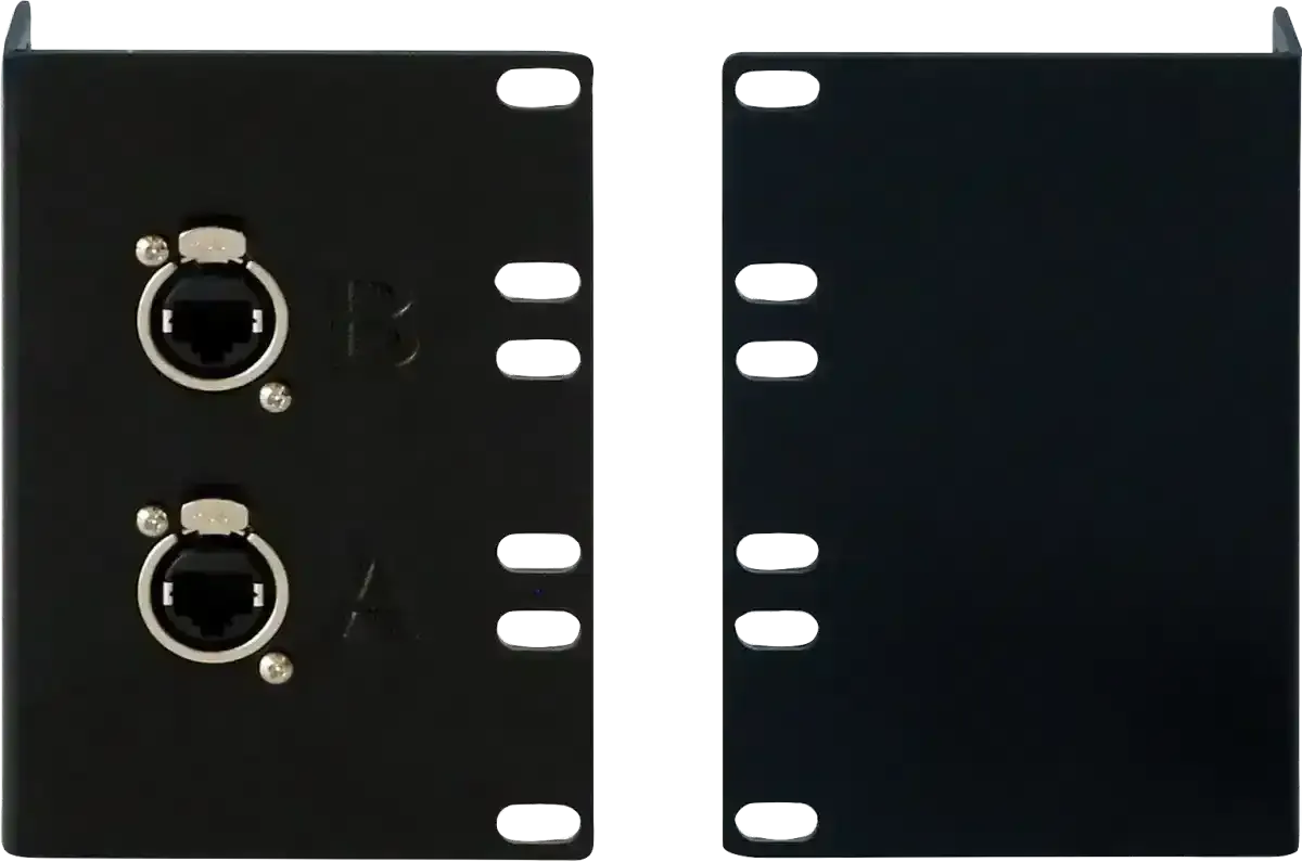 Rack Mounting Kit with two blank panels, one panel with Ethercon jacks and two Ethernet cab