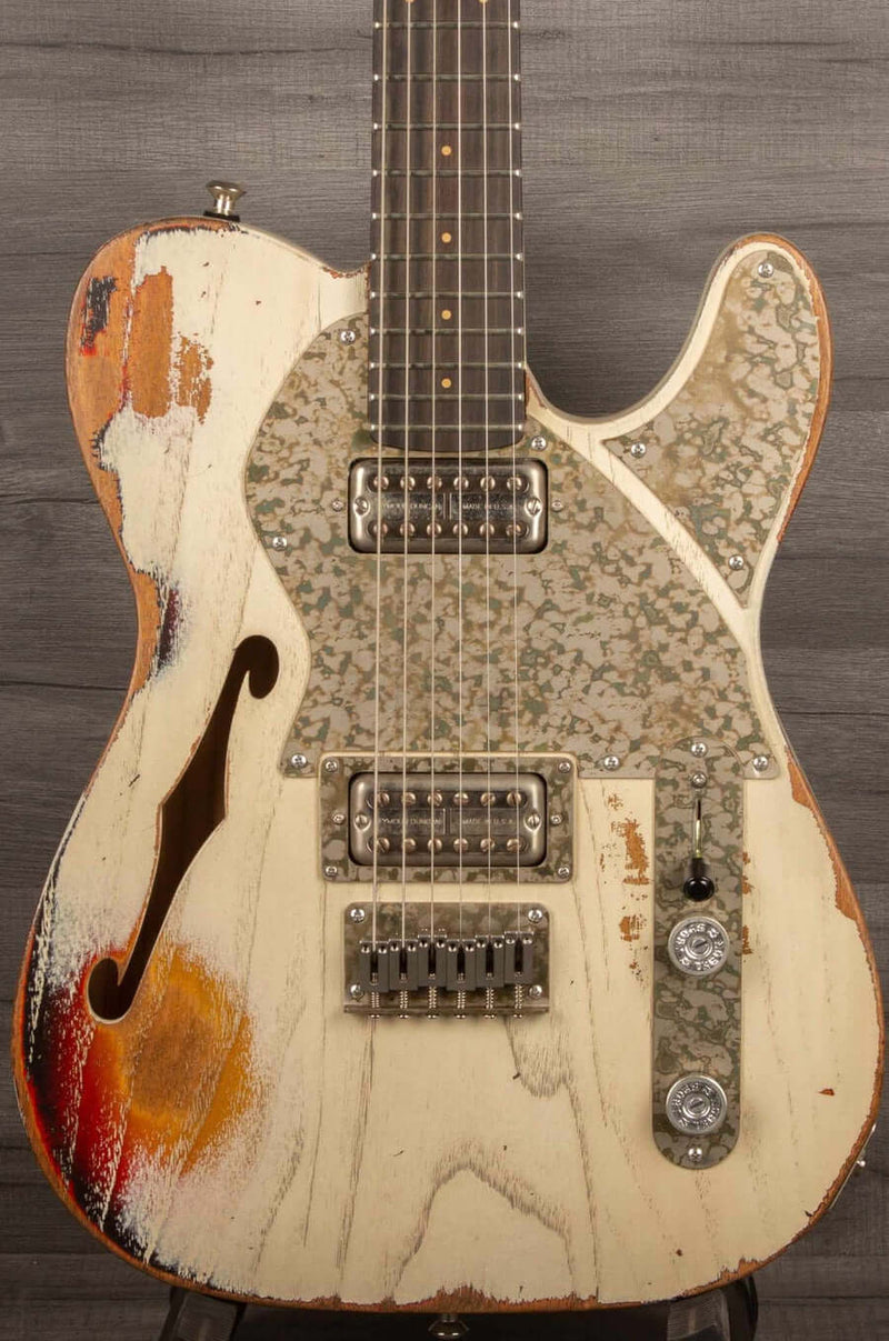 The Paoletti Lounge Series Nancy in Heavy Relic White over Sunburst is a stunning example of Italian craftsmanship, blending vintage aesthetics with modern playability. Handcrafted from aged chestnut wood, this guitar is finished with a nitrocellulose lacquer that gives it an authentic, road-worn look. The heavy relic treatment adds character, making each guitar unique.