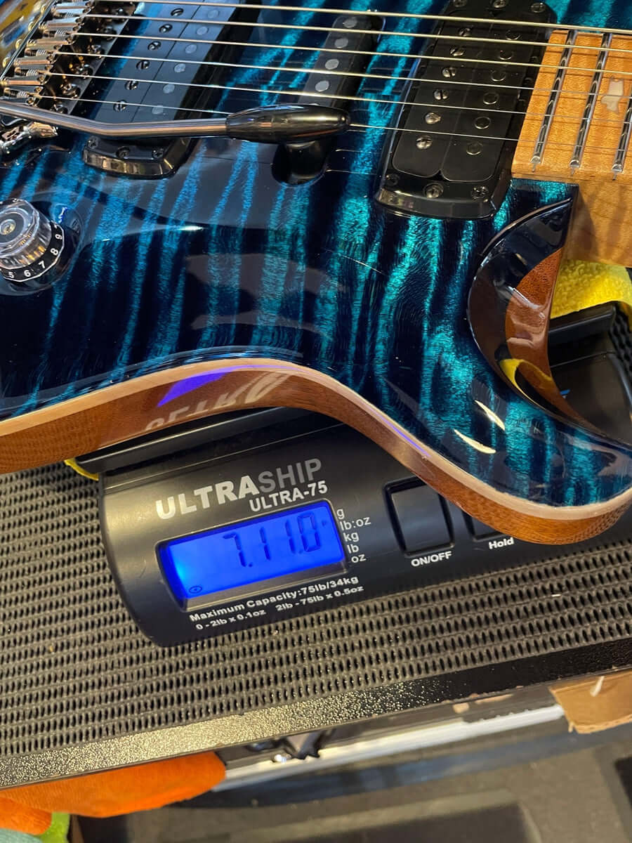 The PRS Modern Eagle V Private Stock PS#10377 in Whale Blue Glow is a tonal and visual masterpiece, represent the apex of Private Stock craftsmanship.