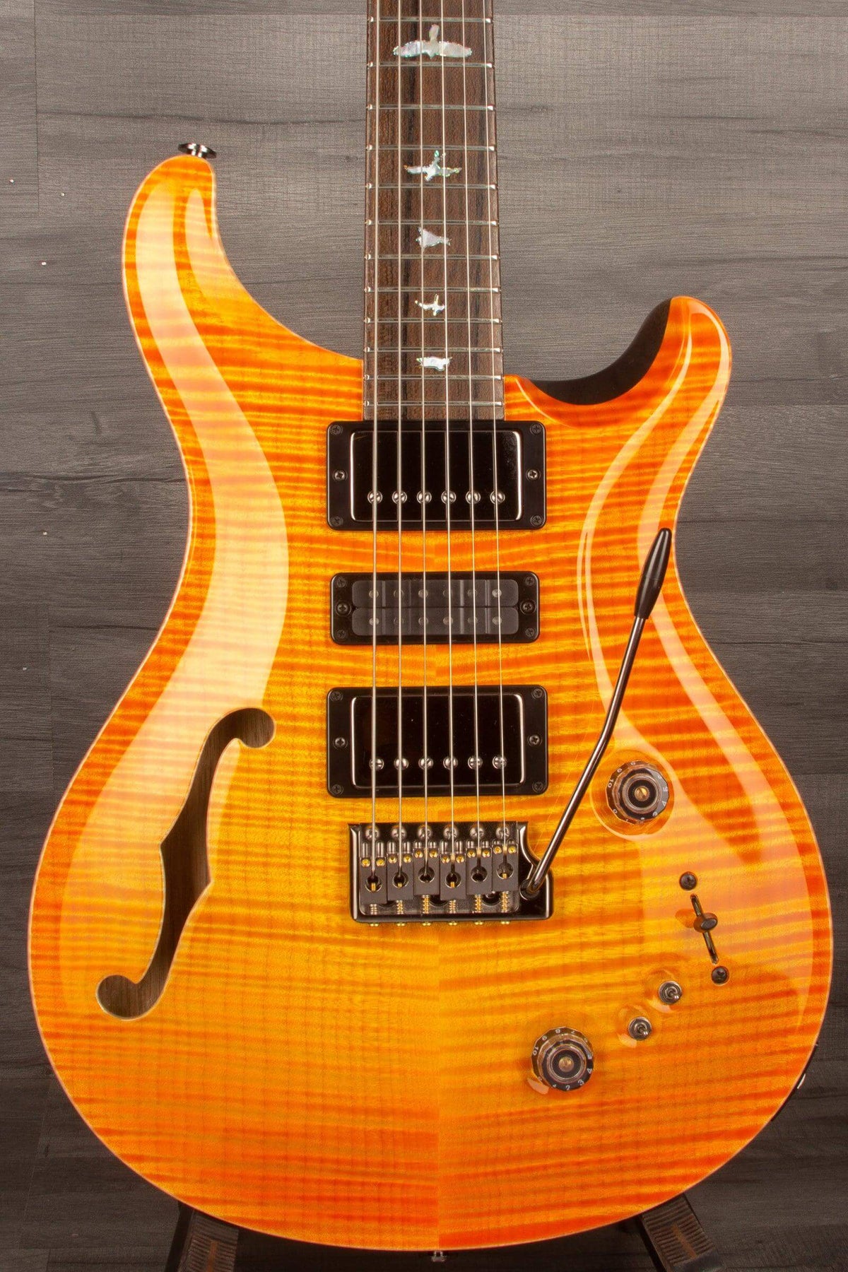 “What I love about running Limited Edition instruments in Private Stock is that it gives the team the opportunity to showcase our work on our own terms,” said Paul Miles, PRS Director of Private Stock. “We chose the Special Semi-Hollow model because the pickup and electronics configuration is extremely versatile, providing highly musical tones. The choice of Black Limba for the back and neck add to the tonal balance while the smoked black hardware against the Citrus Glow finish create a dramatic aesthetic contrast.”