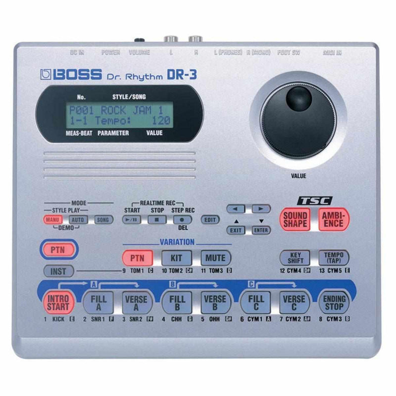 With the DR-3 Dr. Rhythm, guitarists and songwriters can add incredible-sounding drums to their music. This ultra-affordable drum machine includes some of BOSS' best acoustic and electronic drum kits and a selection of bass sounds. Great for jamming, the DR-3's Rhythm Progressions and multiple variations make it easy to create a realistic-sounding drum track for any style of music. And with Total Sound Control, you can tweak your kits to perfection.