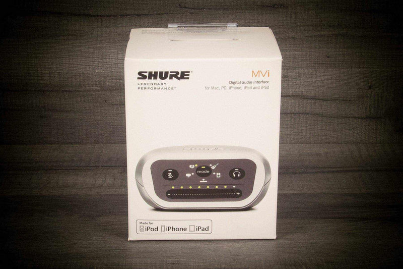 The Shure MVi Digital Audio Interface connects to any standard XLR microphone - including those requiring phantom power - or 1/4 inch plug for guitar, bass or keyboard to any iOS device, Mac or PC for seamless, high-quality audio capture. An intuitive touch panel allows easy, real-time access to volume, gain and mode selection functions. Equipped with five built-in DSP preset modes (Speech, Singing, Flat, Acoustic Instrument, Loud), MVi offers the convenience of a professional sound studio in a compact, portable size. MVi includes a Micro-B-to-USB cable for connection to a PC, Mac or Android device, and is available with a Micro-B-to-LTG cable for connection to Apple mobile devices.