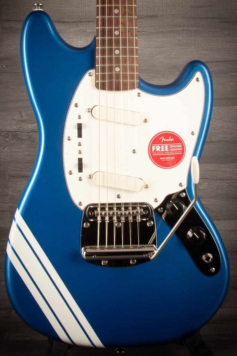 Designed by Fender and inspired by 1960s-era Mustang models, the Squier Classic Vibe ‘60s Competition Mustang is a cool new take on the classic "student" guitar. Featuring a Lake Placid Blue finish with sleek competition stripes, the Mustang has an old-school aesthetic with a host of player friendly features. Despite its diminutive size, the ‘60s Competition Mustang packs a punch courtesy of a pair of Fender-Designed alnico single pickups.