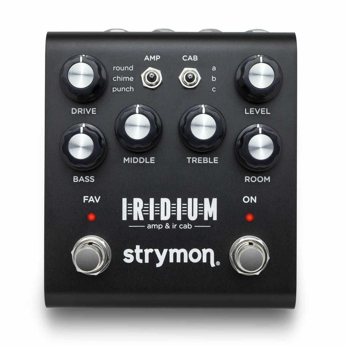 Iridium's hybrid room reverb combines a 256 millisecond stereo impulse response with Strymon's reverb tank algorithm for extended decay. This combination places your amp and cab in a natural sounding room (small, medium, or large), creating a space for your amp to open up and breathe.